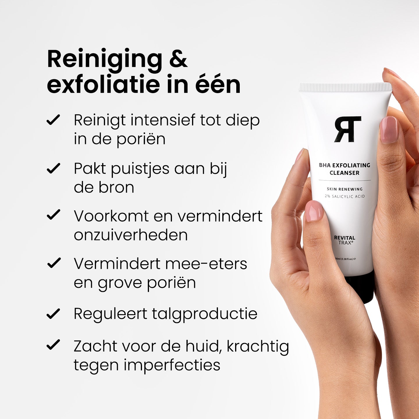 De BHA Exfoliating Cleanser van RevitalTrax is méér dan een gewone reiniger: dankzij salicylzuur reinigt de formule zowel het huidoppervlak als diep in de poriën voor een zuivere en frisse huid.