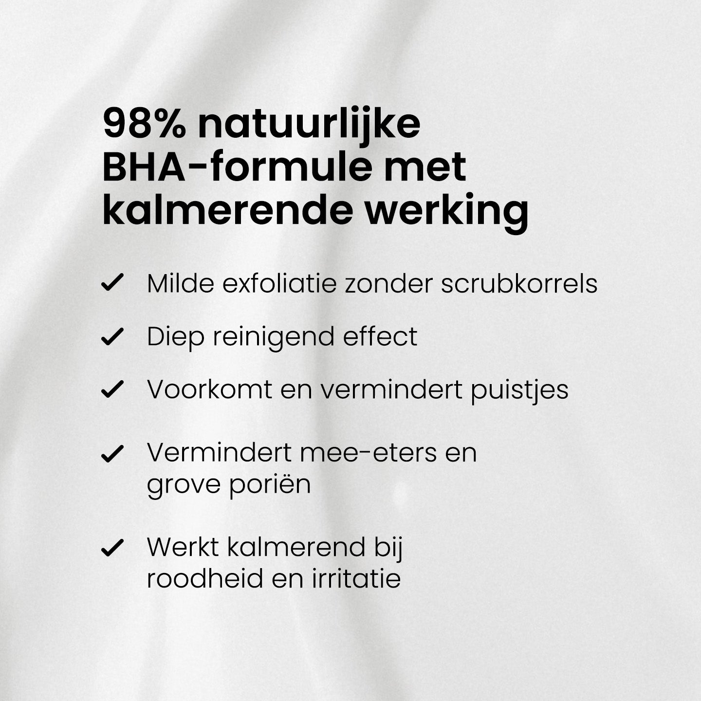 - Salicylzuur exfolieert zónder te schuren. Het lost dode huidcellen op in plaats van ze fysiek te verwijderen, wat het een milde maar doeltreffende exfoliant maakt.