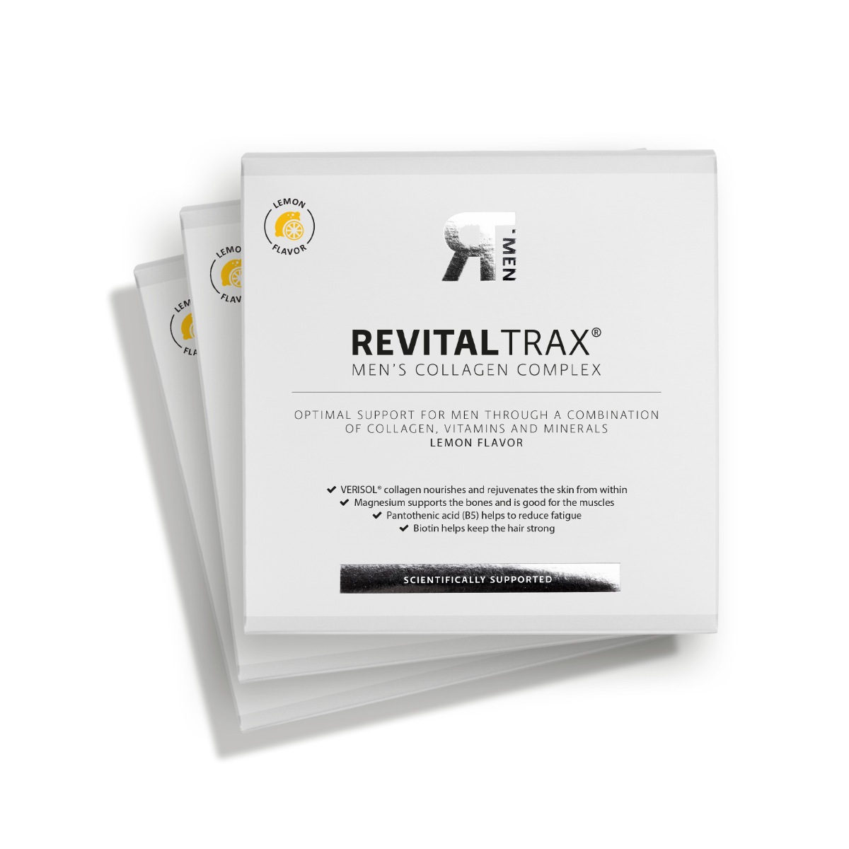 Met RevitalTrax Men’s Collagen Complex kun je dat proces van binnenuit tegengaan. De VERISOL® bioactieve collageenpeptiden in dit complex zijn speciaal ontwikkeld om optimaal door je lichaam te worden opgenomen en de huid van binnenuit te versterken.